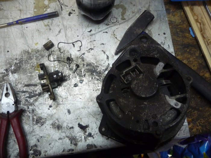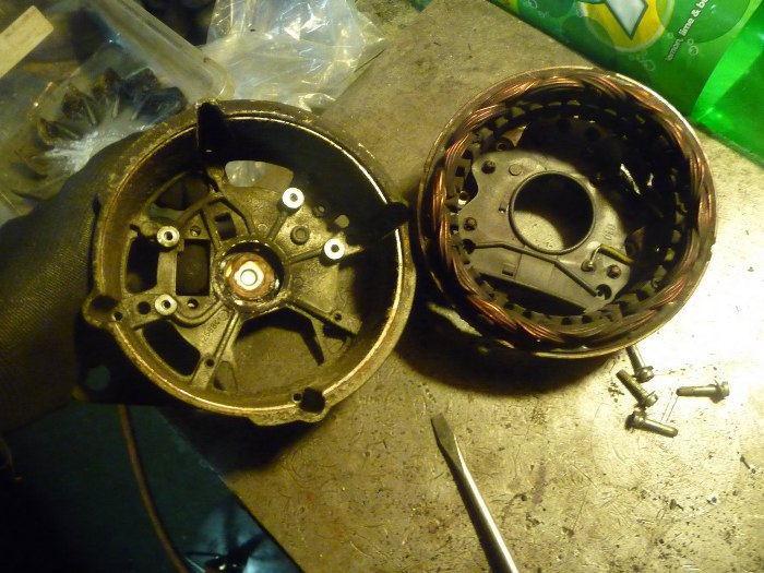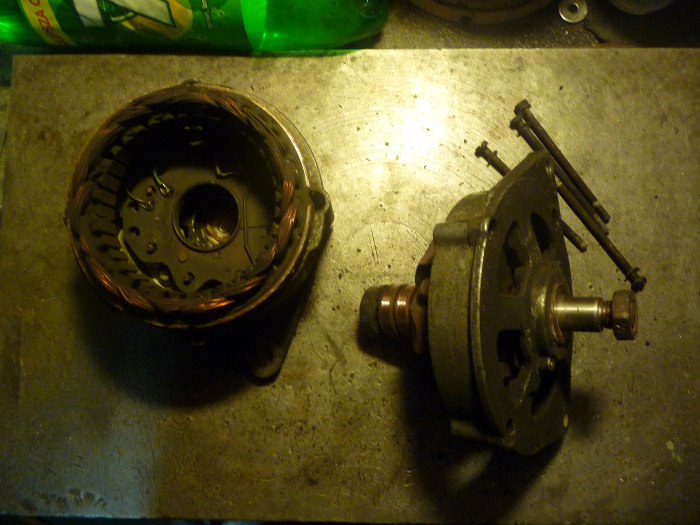 Śruby łączące dwie połówki obudowy alternatora też nie poddały się łatwo, ustąpiły dopiero pod wpływem perswazji palnikiem.