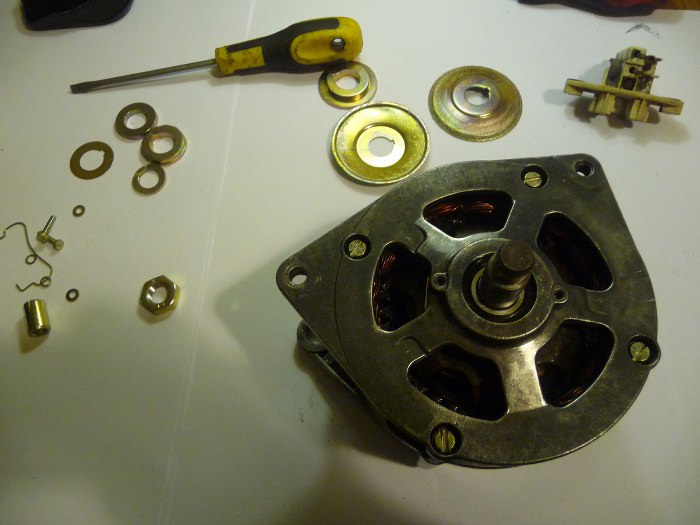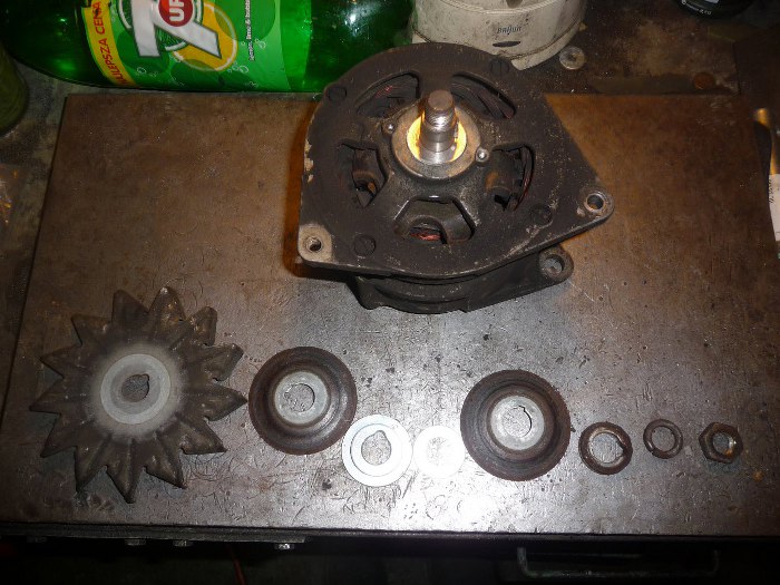 Po długiej i nierównej walce, oraz po wymyśleniu kilku nowych sztuczek na odkręcenie śruby centralnej, wreszcie udało mi się odkręcić to zapieczone na amen draństwo. A już nawet rozważałem inny alternator...