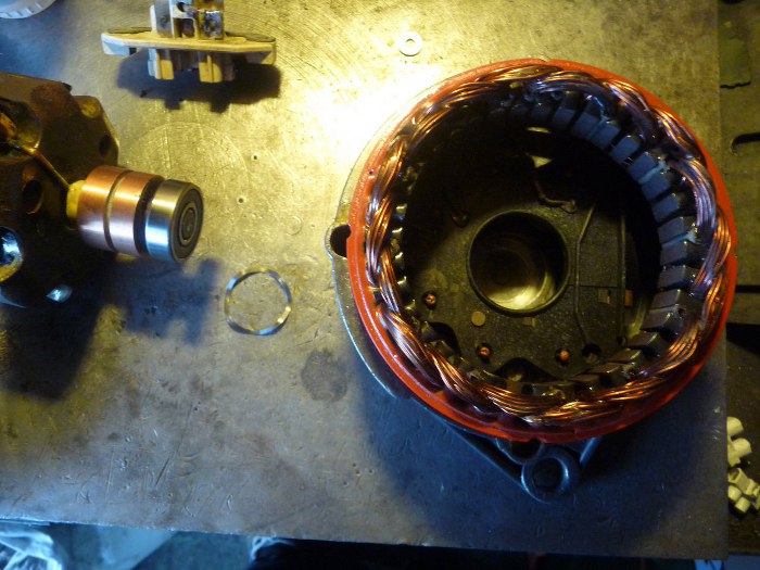 Następnie złożyłem cały zestaw podkładek itp. z przodu alternatora. Gotowe.