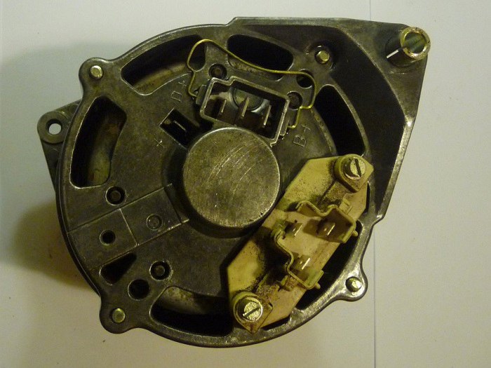 Złącza w odlewie to podłączenie do instalacji elektrycznej samochodu, złącza w plastiku to wyjście na zewnętrzny regulator. To można by zastąpić nowszym regulatorem zintegrowanym, ale skoro działa, to nie ma co ruszać, ma to jakiś urok zabytku.