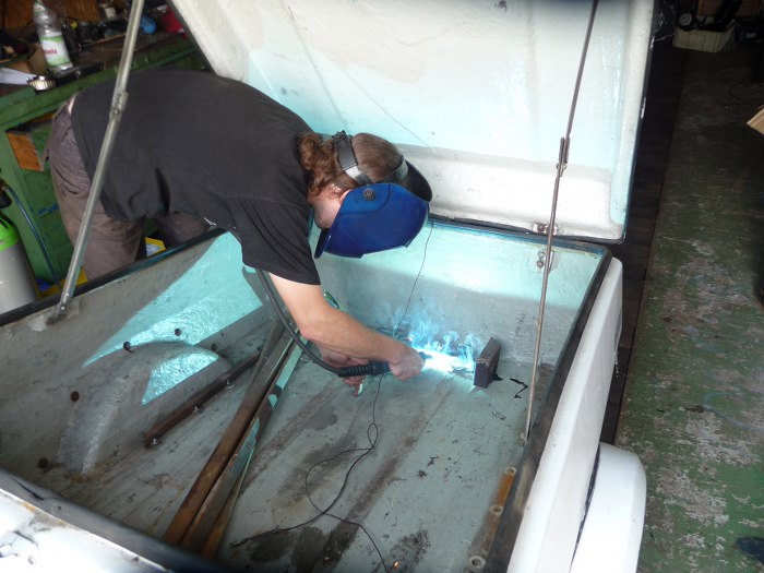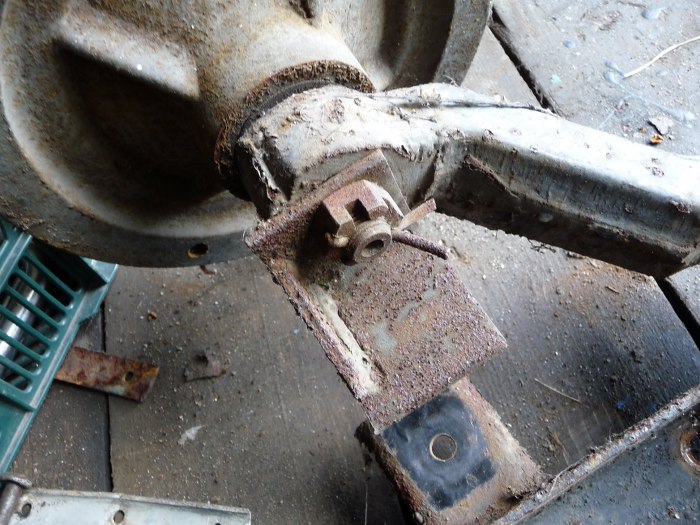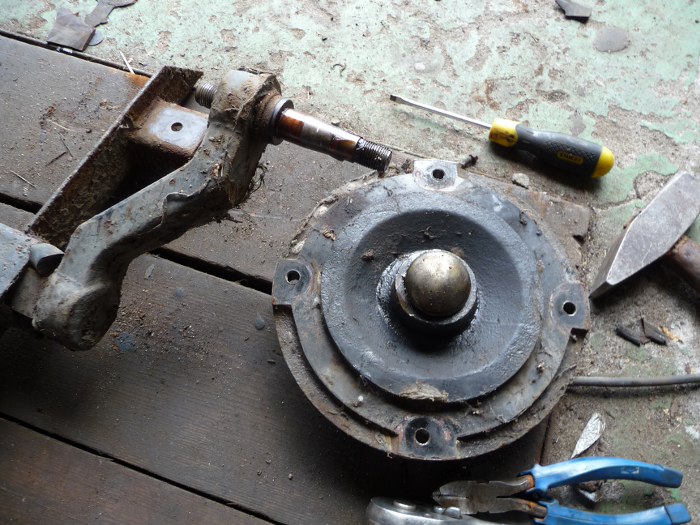 Niestety nakrętki były dość mocno przywiązane do swoich miejsc. Śruby zamkowe natomiast zaczęły się obracać w swoich miejscach. Nic by się nie dało odkręcić, gdyby nie spawarka.