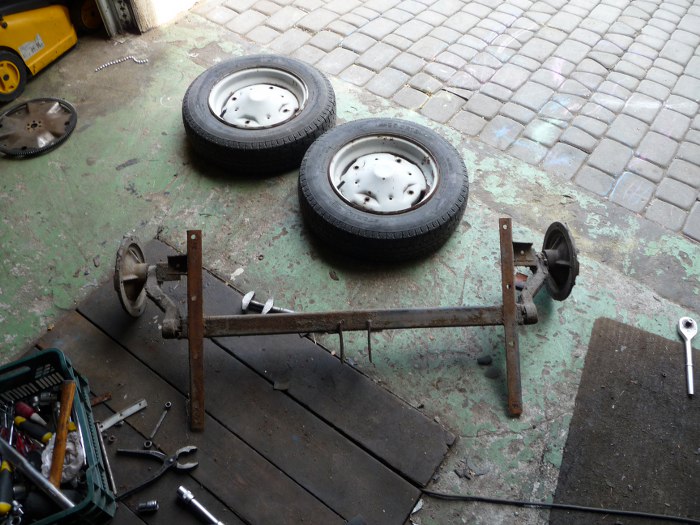 Koła zdjęte, oś już luzem. Teraz ją rozłożę jeszcze bardziej.