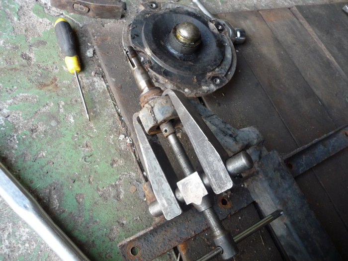 Ośka bardzo ładnie, ścisło siedzi. Ale ściągacz daje radę i kilka minut później obie ośki są wyjęte.