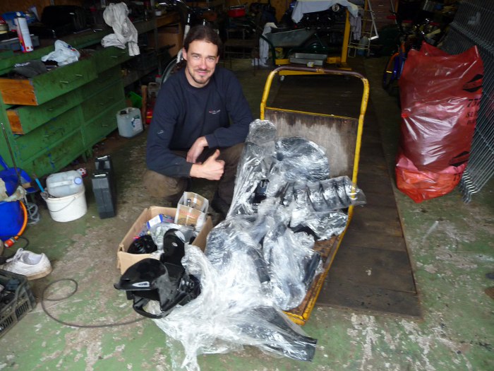 Nadeszła pora na składanie tego całego bałaganu. Zwieźliśmy to do garażu. Ja jak zawsze pełen optymizmu :)
