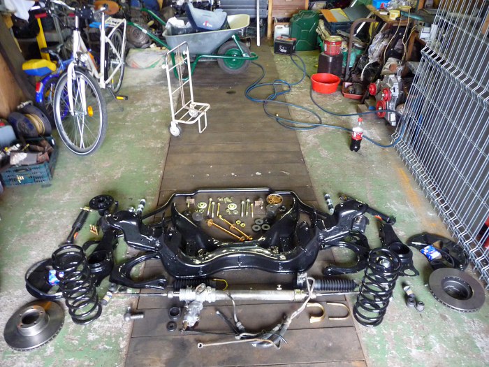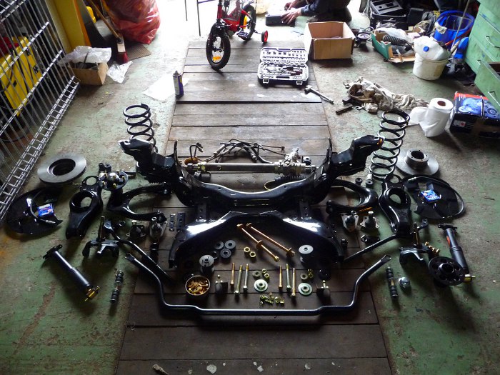 Szczegółowo patrząc wygląda to tak. Piasty i zwrotnice po kataforezie i malowaniu proszkowym, śruby ocynkowane. Wszystko trzeba powoli i dokładnie poskładać...