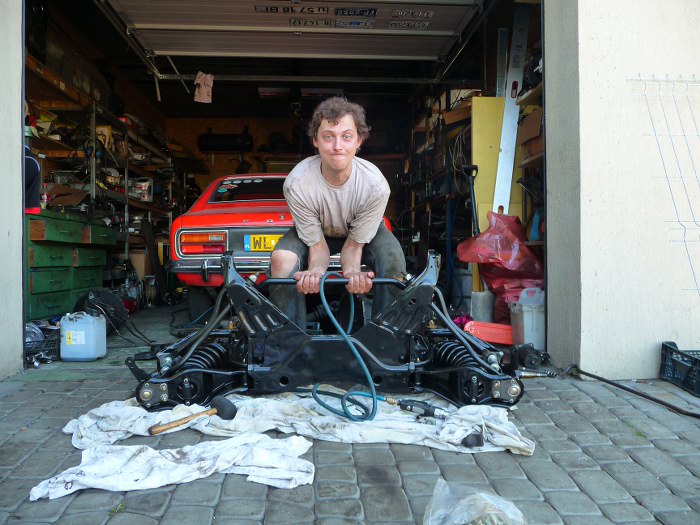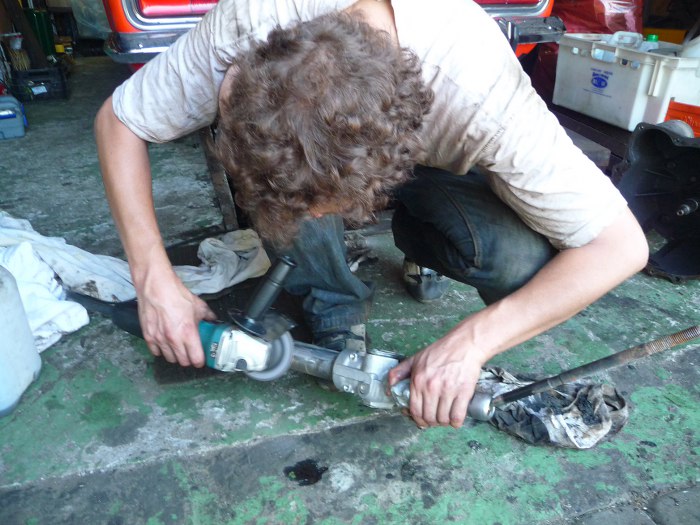 Przekładnię kierowniczą Michał od razu wyczyścił i pomalował podkładem. Na to pójdą jeszcze dwie warstwy chlorokauczuku i będzie gotowe.