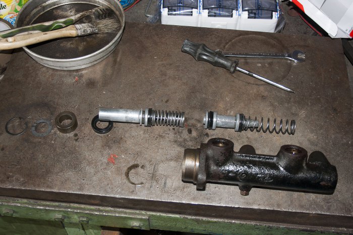 Znalazłem fotki z regeneracji pompy hamulcowej sprzed jakiś 2-3 miesięcy, więc wrzucam dla porządku. Pompa została rozłożona na części pierwsze, gumki wymienione i nasmarowane.