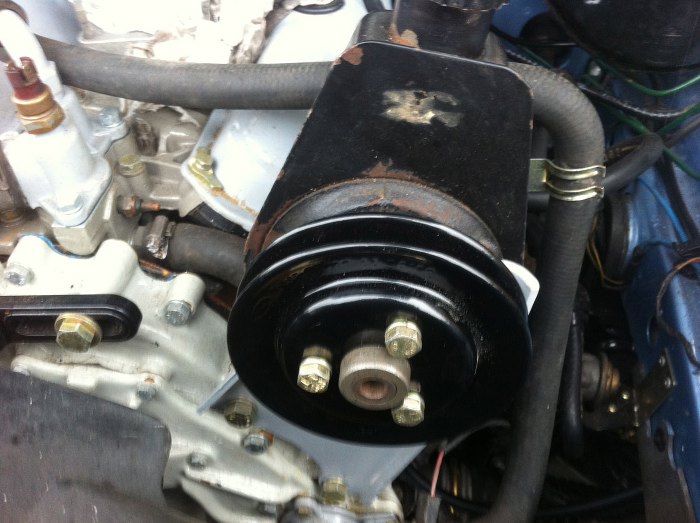 Pompa wspomagania została jak była, ale obdrapane kółko pasowe Michał musiał oddać do pomalowania, bo wszyscy narzekali na jego wygląd. Tu już gotowe.