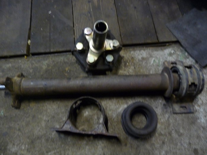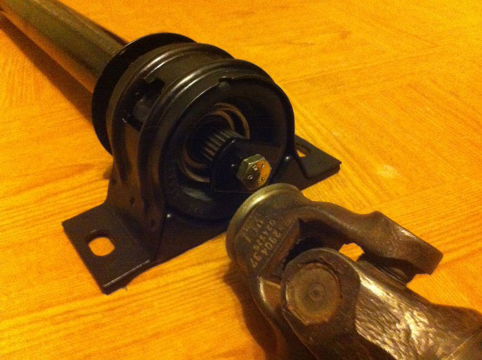 Wał napędowy - wybrane dobre elementy z trzech sztuk + nowe łożysko podpory wału.