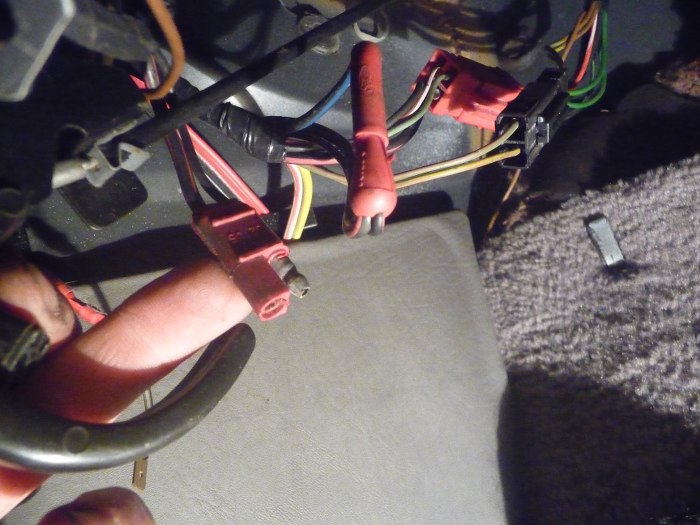 Tu akurat się ją wpina w obwód rozrusznika. Potem przeplotłem ją Michałowi w okolice biegozmieniacza. Tam wychodzi zasilanie podświetlenia biegów oraz trzy kabelki do czujnika w skrzyni. Dalej już ogarnął Michał - włożenie przekaźnika, podpięcie zasilania do podświetlenia i podpięcie zasilania przekaźnika. Nawet potem to wszystko działało :)