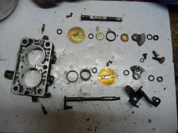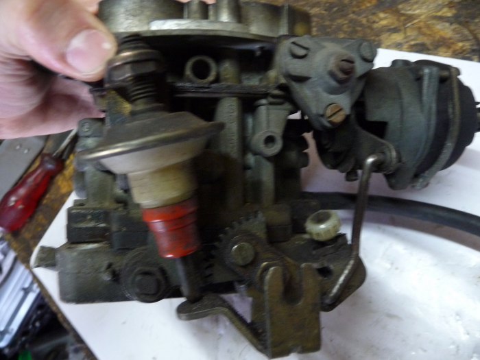 Póki co silnik sobie spokojnie czeka na wyciągnięcie samochodu z przechowalni i pomalowanie podwozia. Ja natomiast wziąłem się za gaźnik. Jest to oryginalny gaźnik od tego silnika, Solex 38/38 EEIT.
