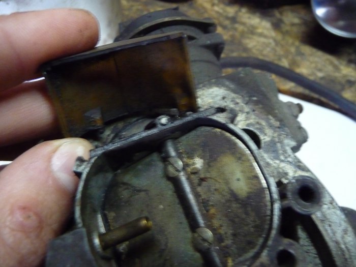 Jedna z plastikowych osłonek na górze gaźnika. Zawsze mają połamane zaczepy. Ta nie miała, ale Nebel pałał wielką ciekawością co jest pod nią :)