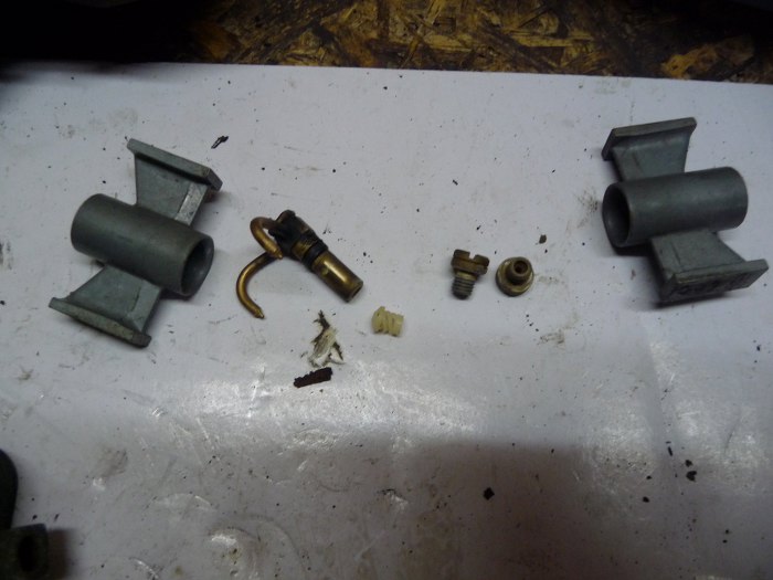 Wyjęty pływak i zaworek iglicowy.