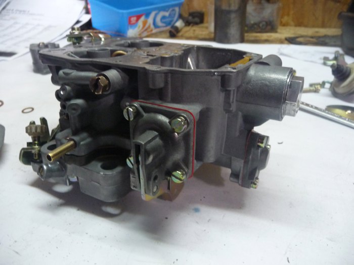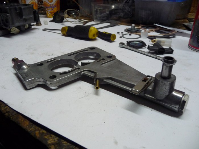 Powkręcałem dysze, złożyłem pływak z zaworkiem iglicowym i amortyzator przepustnic (nie wiem, czy to się tak nazywa, ale zasadę działania ma właśnie taką.