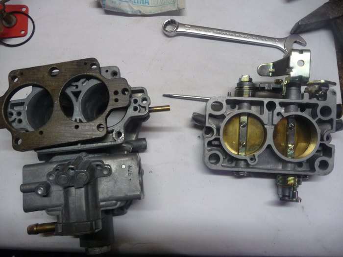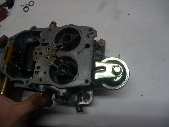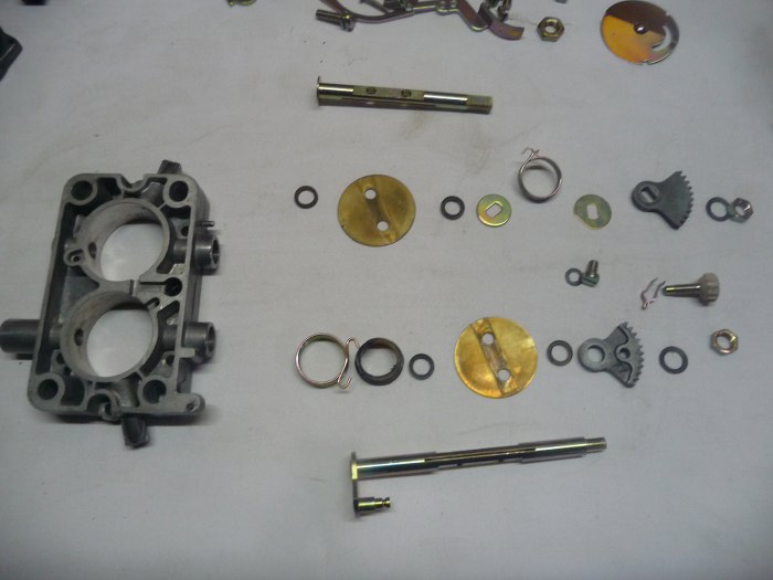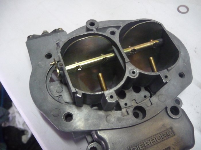 Pierwsza rzecz to ogarnięcie mechanizmu przepustnic. Muszą się bez oporów zamykać i otwierać, do tego w pozycji zamkniętej muszą być w określonej pozycji w stosunku do otworków w podstawie gaźnika. A na koniec muszą być zsynchronizowane.