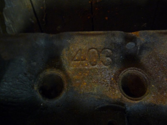 Tak. 403 to pojemność w calach sześciennych, czyli 6.6 litra. Silnik wkładany jakoś przez 2 lata do Oldsmobile'a Cutlass. Poza wielkością tłoków i umieszczeniem cylindrów bliźniaczy blok do pięciolitrówki. Jakoś w tym momencie Michał zaczął mieć ciśnienie, żeby uratować ten silnik :). Dlatego wziął się za jego rozkręcanie, żeby zabrać go do szlifierni. Pod spodem typowy szlam niewymienianego nigdy oleju z dodatkiem wody i zmielonego tłoka.