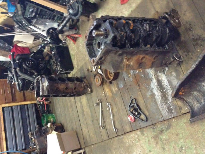 Jakiś czas temu Trefl znalazł drugi taki sam silnik jak ja już mam ze dwa - 5.0l z Oldsmobile. Kupił go w ciemno, wiedząc jedynie, że brakuje jednego tłoka, bo się urwał i zrobił dziurę w bloku. Plan był taki, żeby wziąć ile się da na części, a resztę by odkupił ode mnie z zapasowego 5.0.