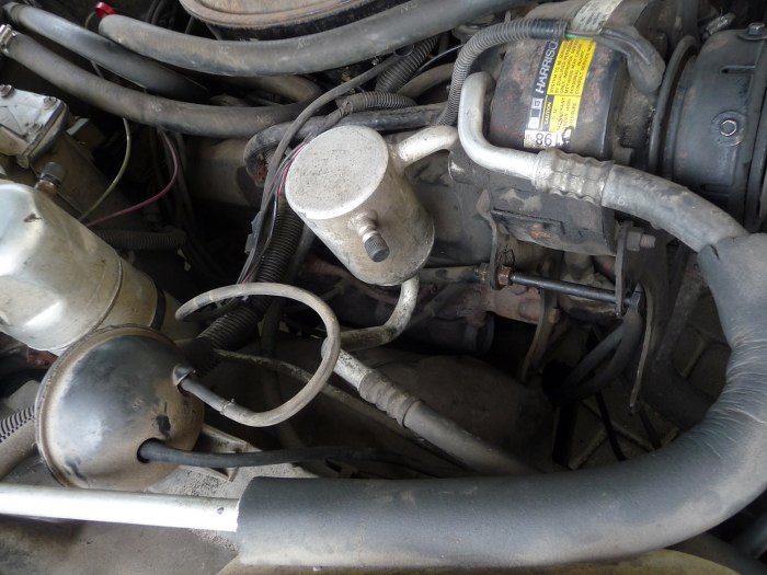 Potem okazało się, że jedna z metalowych rurek rozprowadzających powietrze do głowic jest skorodowana i się ułamała. W tym momencie układ i tak już nie miał sensu :) Po prawej widać zawór rozdzielający powietrze na głowice i katalizator.