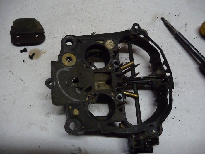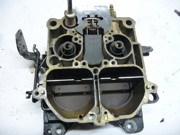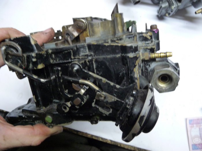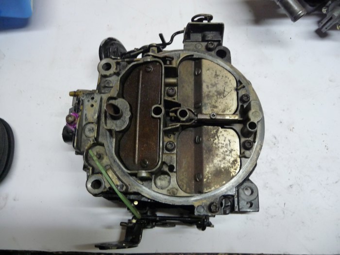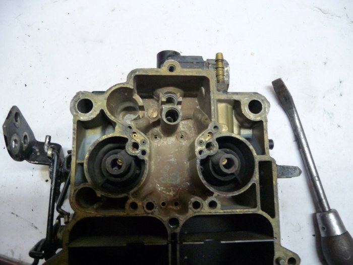 Trafił do mnie gaźnik z silnika podobnego do tego Mercruisera, co już robiłem, tyle że ten nie jest dwu, tylko czterogardzielowy. Zresztą jest to dość standardowy Rochester Quadrajet, podobny mam na silniku z Caprice, tyle że z elementami sterowanymi elektrycznie. Ten jest na szczęście "analogowy" :)
