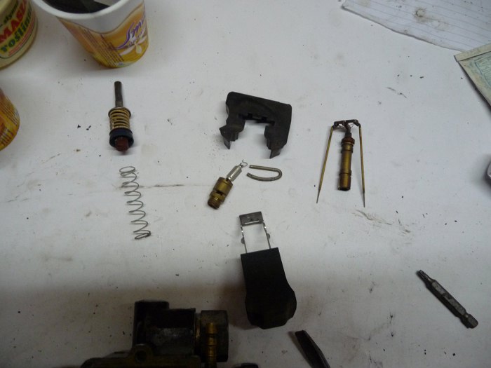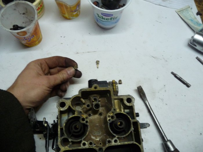 Po opróżnieniu korpusu zabrałem się za rozkładanie podstawy gaźnika. Dysze na początek, przy okazji zapisałem jak były ustawione, żeby łatwiej było uruchomić silnik na zregenerowanym gaźniku.