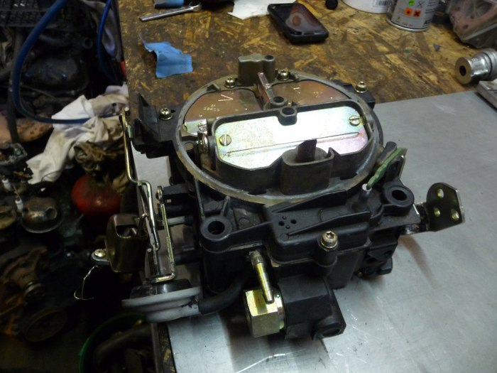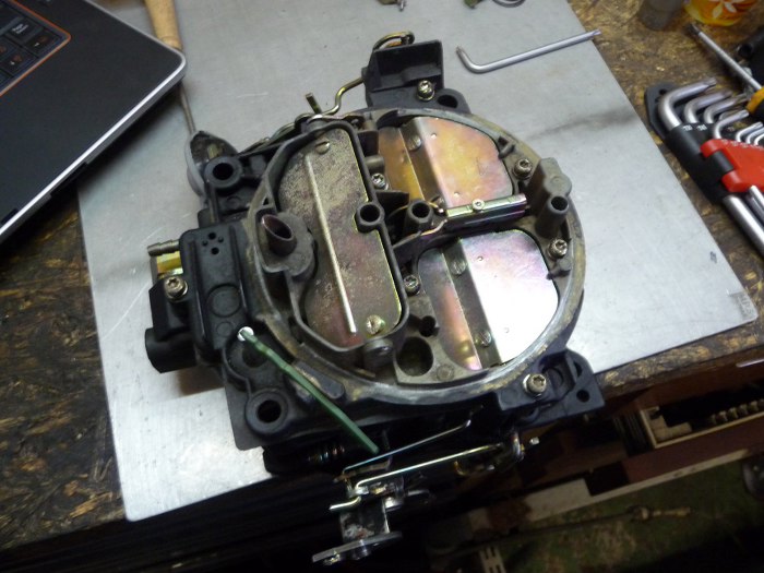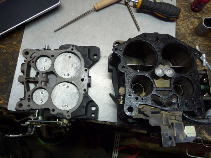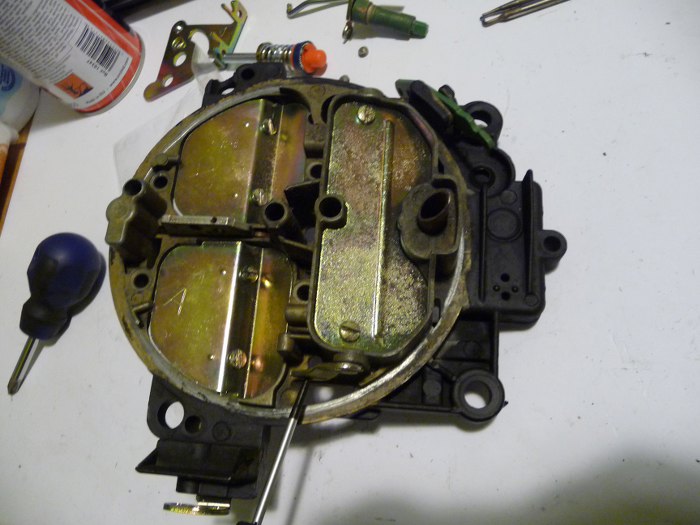 Tak to wygląda zmontowane. Klapki większego przelotu sterowane są podciśnieniem z gaźnika (jak jest za duże, to znaczy, że trzeba więcej powietrza, więc muszą być otwarte klapki), natomiast klapki mniejszego przelotu... no właśnie. Tu sobie zdałem sprawę, że czegoś brakuje. Brakującym ogniwem okazał się bimetal sterujący pracą tych klapek ssania. O nim później, bo dostałem go dopiero później.