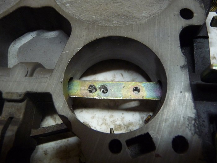 Pech czy nie pech, jakoś trzeba sobie poradzić. Naciąłem Dremelem ośkę przepustnic, a następnie wydłubałem resztki wiertła i gwintownika.