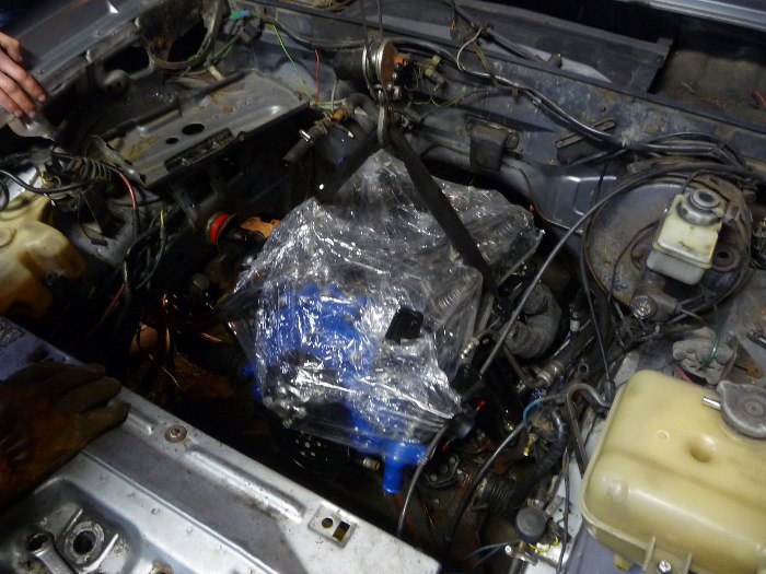 Silnik dość szybko znalazł się w samochodzie. O, i widać miskę olejową :)