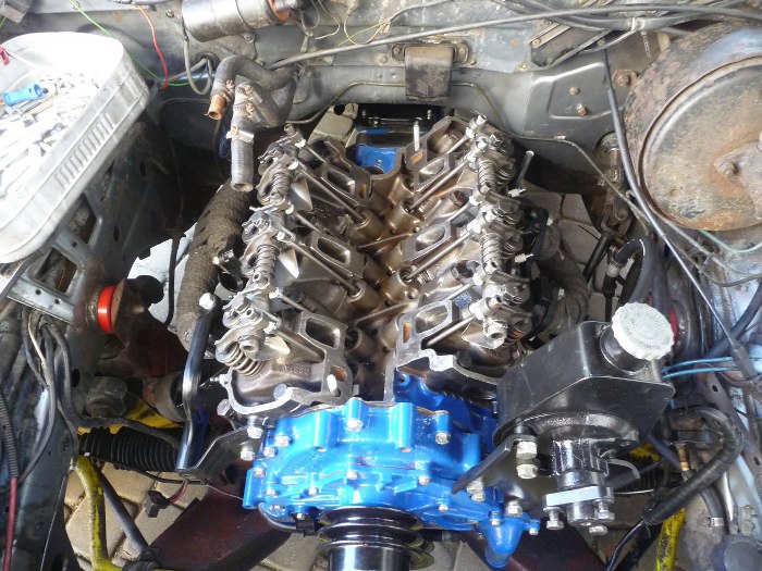 Następnie przykręciłem kolektor dolotowy i pokrywy zaworów. Nalałem też olej do silnika i kręciłem pompą oleju aż rozprowadził się w całym silniku. Dzięki temu przy pierwszym odpaleniu silnik od razu będzie smarowany. Założyłem też aparat zapłonowy i wstępnie go ustawiłem.