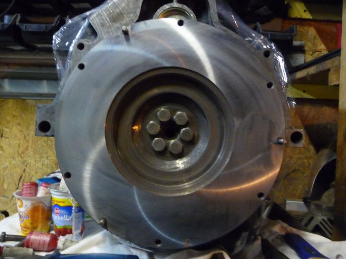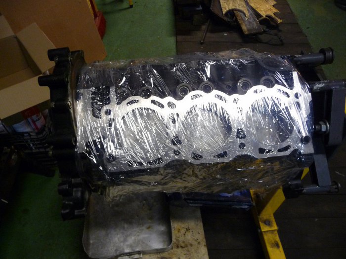 Po poskładaniu dołu zapowiadał się przestój, bo trochę więcej niż zwykle pracy czekało na mnie z głowicami. Dlatego zawinąłem silnikw folię, żeby się nic do środka nie dostało.