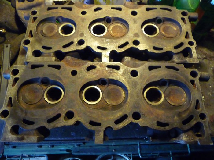 Kolejny komplet głowic miał nabite twarde gniazda. Zanim zostały oszlifowane pod zawory zabrałem je ze szlifierni.
