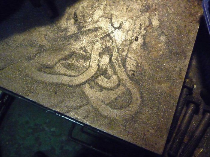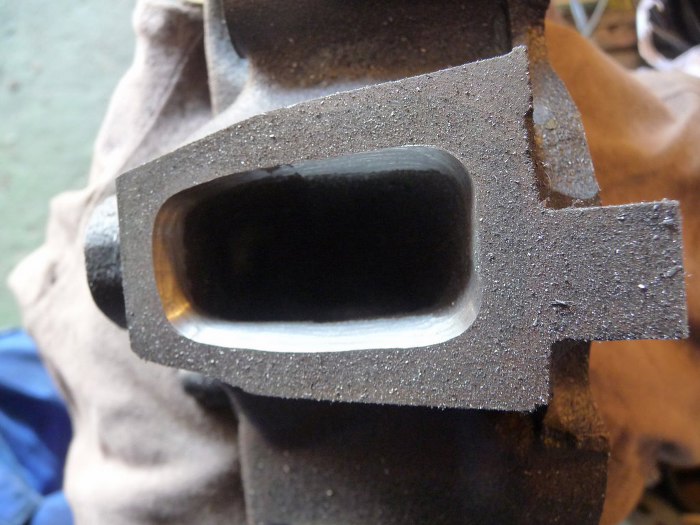 Odrysowałem ten kształt na każdej z komór spalania w obu głowicach i obrobiłem je szlifierką wrzecionową. Widać, dlaczego dalszą obróbkę głowic zostawiłem na później.