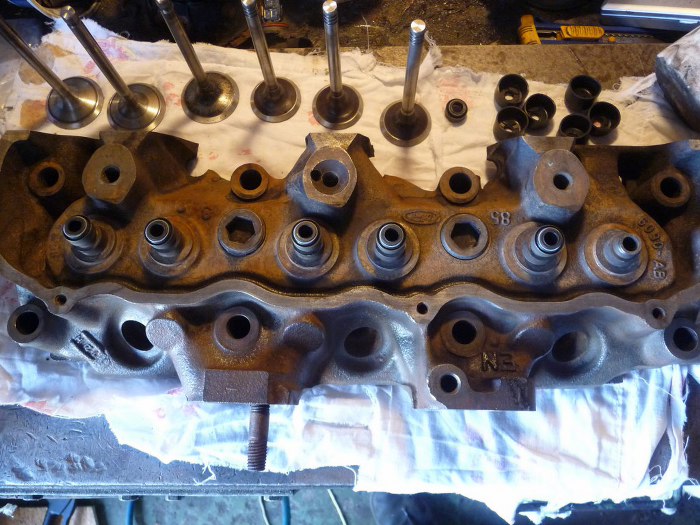 Po obróbce głowic, która produkowała dość sporo opiłków, mogłem wreszcie to umyć i poskładać. Założyłem uszczelniacze zaworowe.