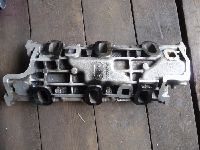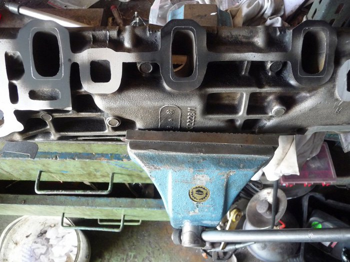 Rafał dostarczył kolektor dolotowy, który miałem użyć. Chciałem spasować kanały dolotowe do uszczelki, tak jak w głowicach. Sęk w tym, że to kolektor od 2.3, a nie od 2.8 i kanały są na dzień dobry zdecydowanie za małe. Dobra, zacznijmy od pomalowania sprayem.
