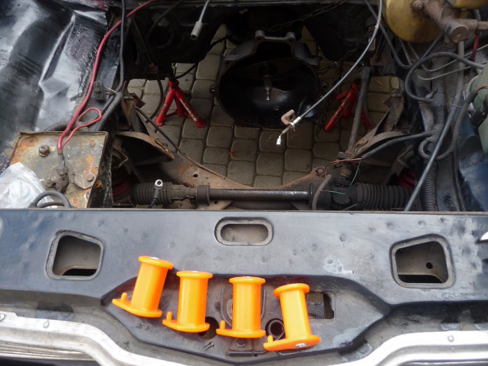 Korzystając z okazji miałem jeszcze wymienić gumy mocujące przednie zawieszenie w karoserii na poliuretany.