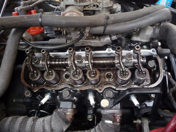 Na początku użyłem starej sztuczki, czyli resztek aparatu zapłonowego + wiertarki do uruchomienia pompy oleju i nasmarowania całego silnika. Potem uruchomienie silnika i 20 minut przy 2000 obr/min żeby ułożyć wałek rozrządu. Po tym czasie zdjąłem pokrywy zaworów, dokręciłem głowice i kolektor dolotowy, a następnie sprawdziłem regulację zaworów.
