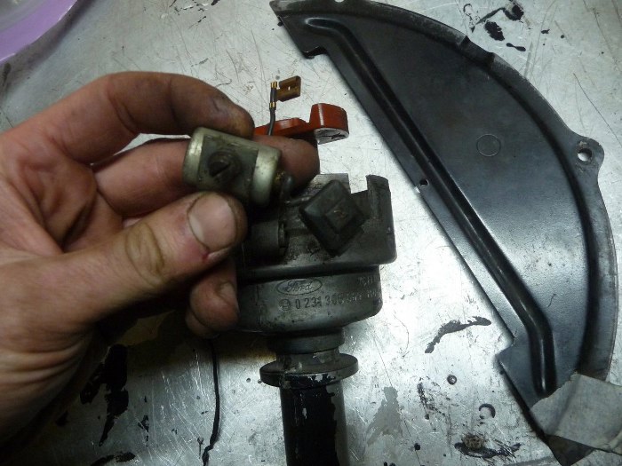 Niestety silnik nie chodził tak jak trzeba. Kichał, prychał, nie chodził na wszystkie cylindry... Było kilka powodów, głównie związanych z gaźnikiem i aparatem zapłonowym. Gaźnik od pojemności 2.0 (mający być tymczasowo) był totalnie przeregulowany i zalewał silnik. Do tego iskra występowała losowo. W końcu wkurzony wyjąłem aparat zapłonowy i świece i kręciłem tym luzem nad silnikiem. Wyszło co następuje - w środku aparat ciężko chodzi, na moje oko nie działa żaden mechanizm przyśpieszania/opóźniania zapłonu - ani podciśnieniowy, ani odśrodkowy. Przerywacz miał za małą przerwę. Ogólnie iskra w końcu została przeze mnie przywrócona, ale była bardzo, bardzo słaba. Na koniec urwał się, przetarty już mocno, kabelek przy aparacie zapłonowym. To przeważyło szalę - zamiast odbudowywać to, co jest, złożę Rafałowi nowy aparat, już nie z przerywaczem, a bezstykowy, do tego doda się moduł, cewkę i wiązkę i zrobię nowy układ. Być może to wreszcie pozwoli na uruchomienie tego draństwa :)