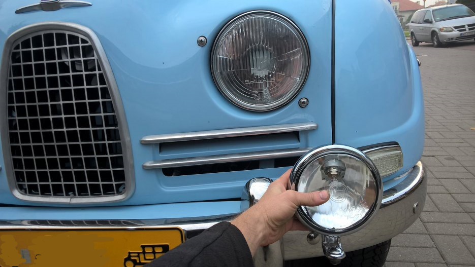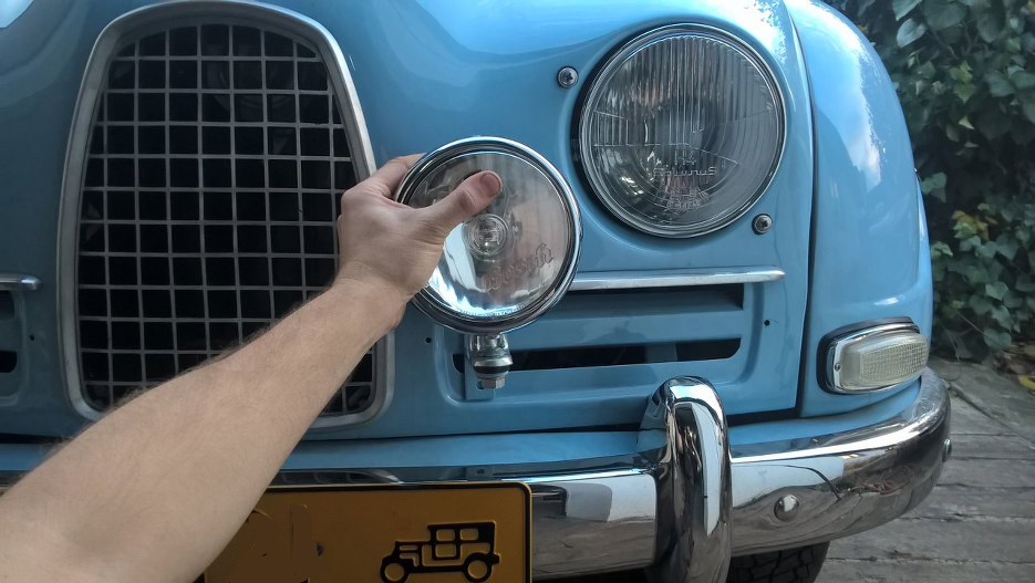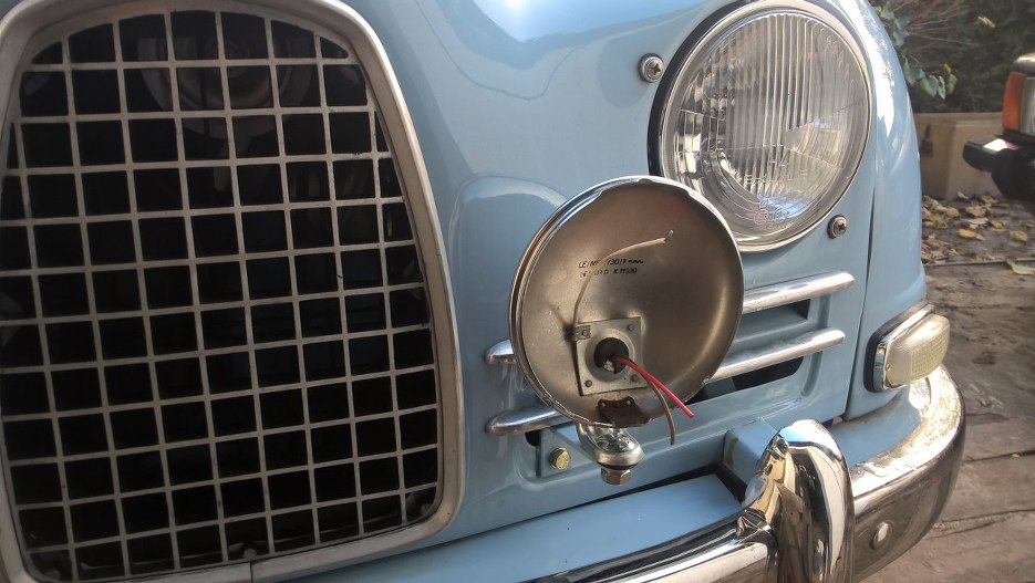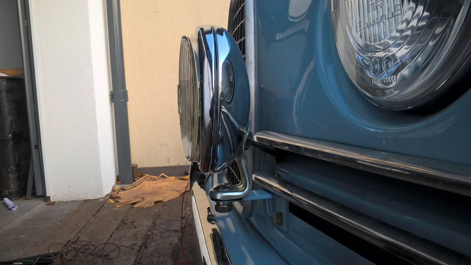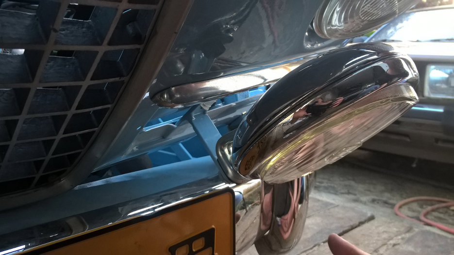 Ledwo widać, ale nakrętka od halogenu jest milimetr od zderzaka. Mogę uznać, że pomiary i projekt mocowań się udały.