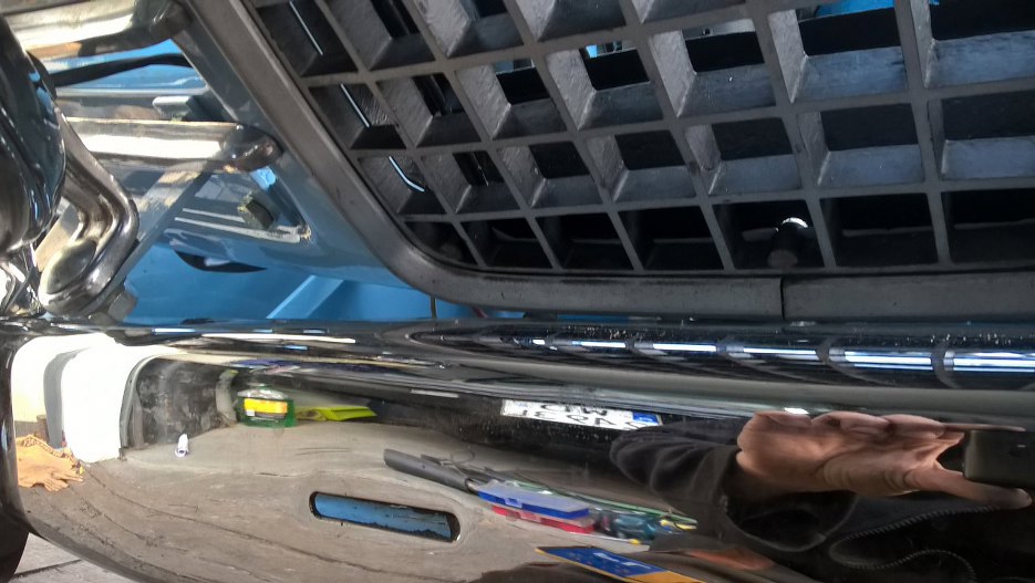 I ostateczne miejsce mocowania. Trochę przeszkadza tablica rejestracyjna, bo po otwarciu maski halogeny by ją wygięły. Trzeba będzie ją opuścić.