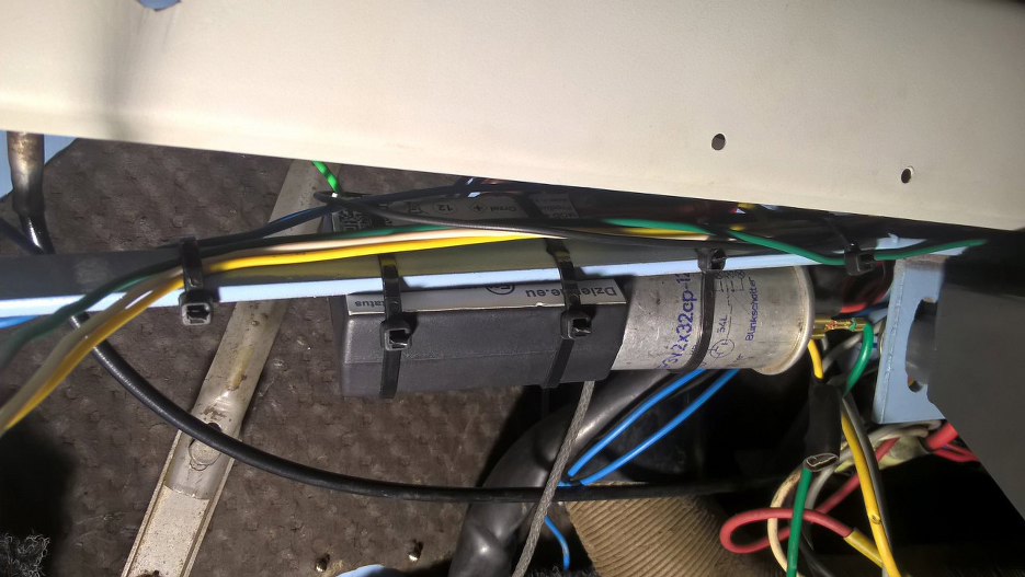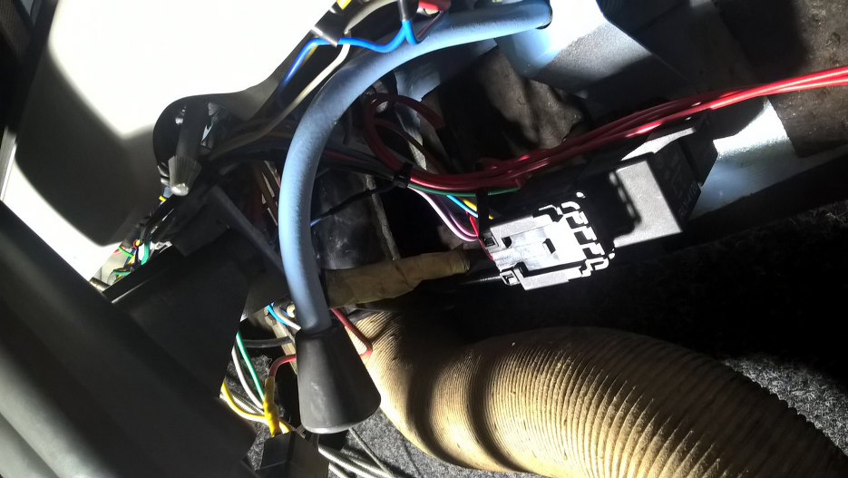 I wystające trzy kabelki - plus po zapłonie do sterowania całym tym cyrkiem oraz dwa kabelki sterujące przekaźnikami. Przełączniki w klimacie dopiero są zamówione, więc zainstaluję je później.