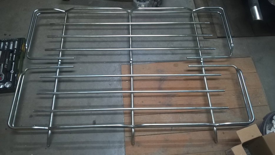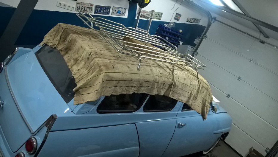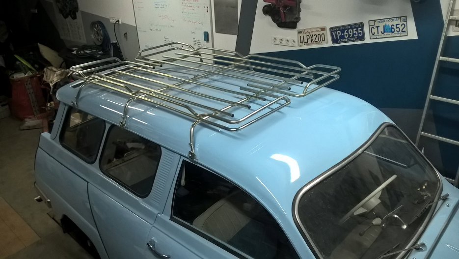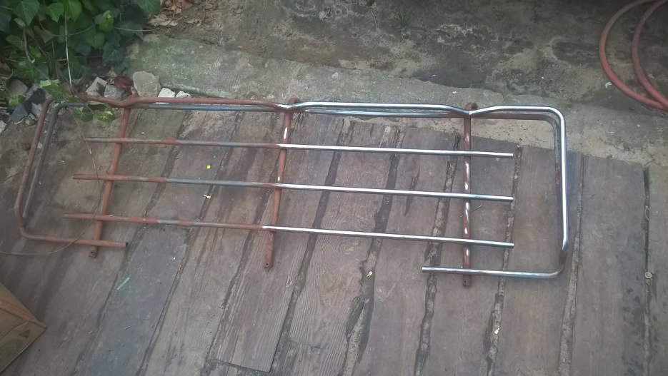 Dostałem też do odnowienia bagażnik dachowy z tego Saaba. Nie wiem, czy to oryginalny, ale na pewno z epoki. Dostałem go w dwóch połówkach. Jak widać jest już dość mocno zapuszczony.