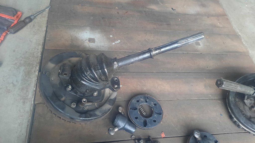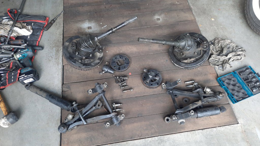 Przygotowałem przednie zwrotnice z hamulcami i półosie.