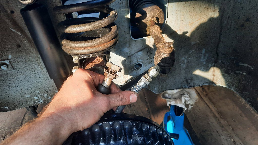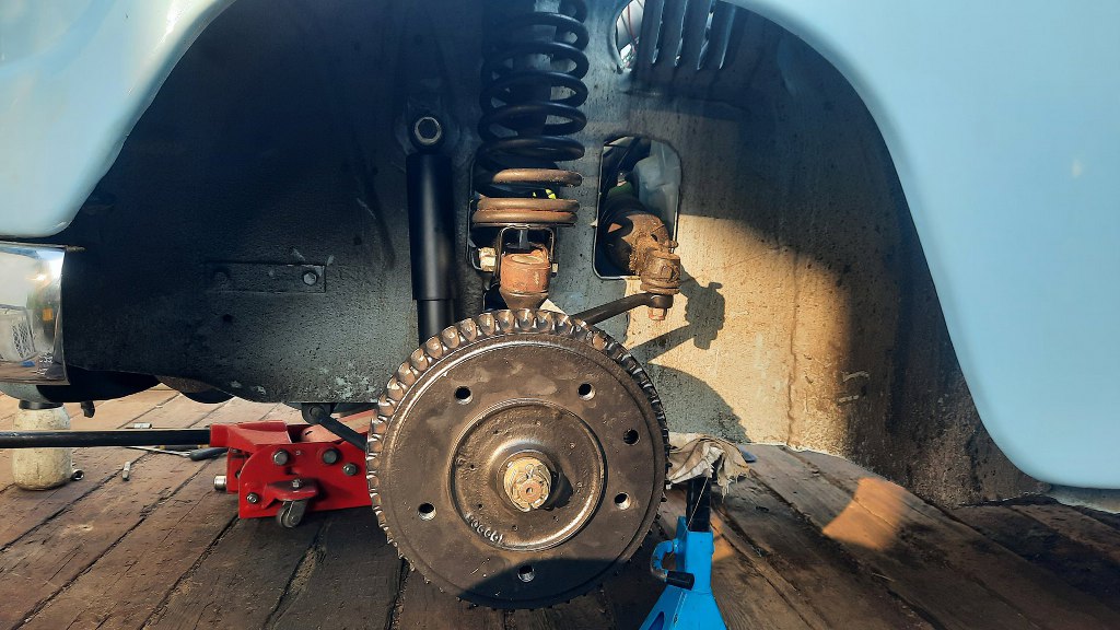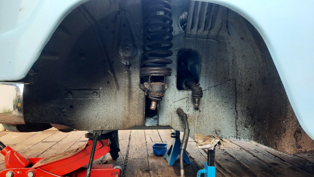 Tu niestety też się okazało, że remont zawieszenia był tu zrobiony na zasadzie pomalowania wszystkiego. I już. Czyli wszystkie gumy, hamulce, przewody hamulcowe były stare... Niestety, ze względów bezpieczeństwa, nie mogłem tego wypuścić na ulicę. Dlatego zacząłem demontować zawieszenie...