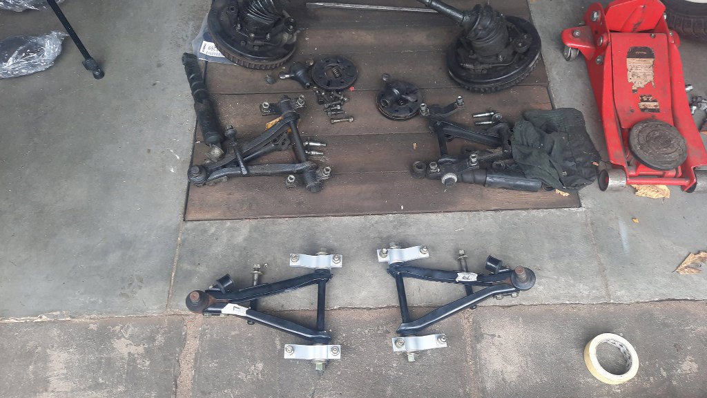 Przygotowałem nowe zawieszenie do włożenia. Podkładki regulujące geometrię zostawiam ze starego. Nie łudzę się, że nie tzreba będzie geometrii zrobić po wszystkim, ale może będzie dość blisko trafiona.