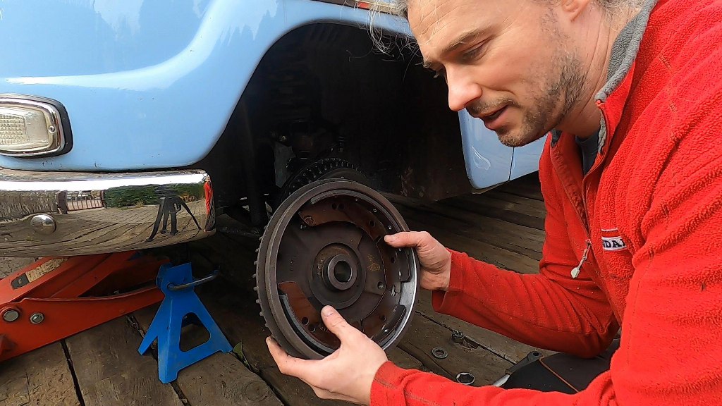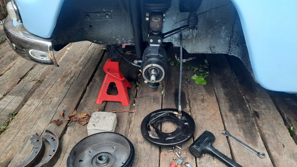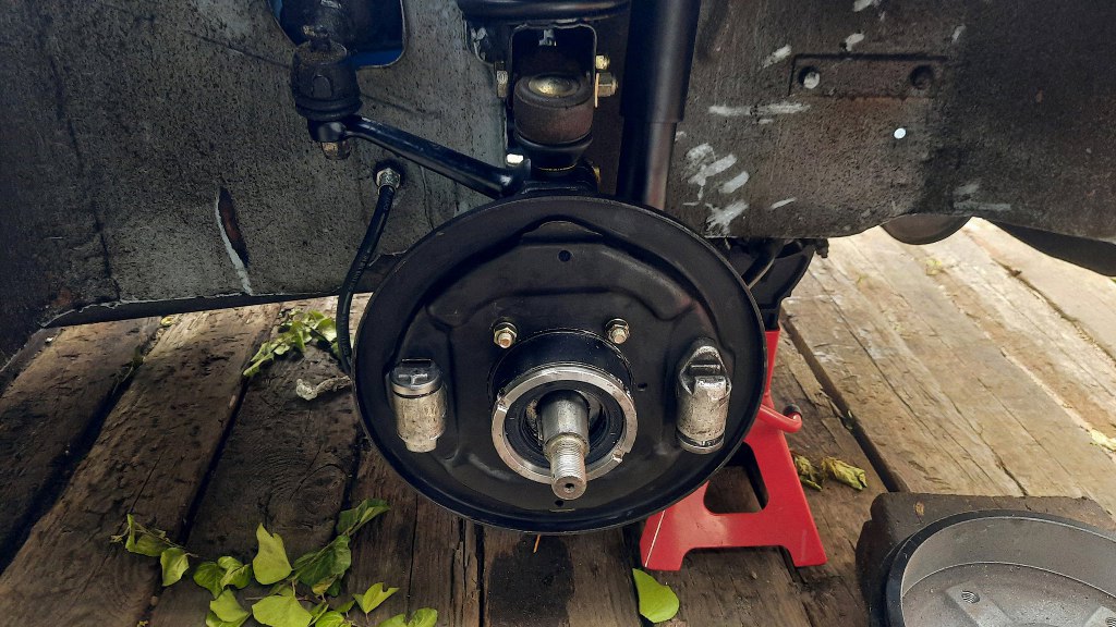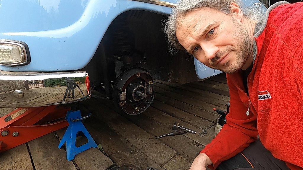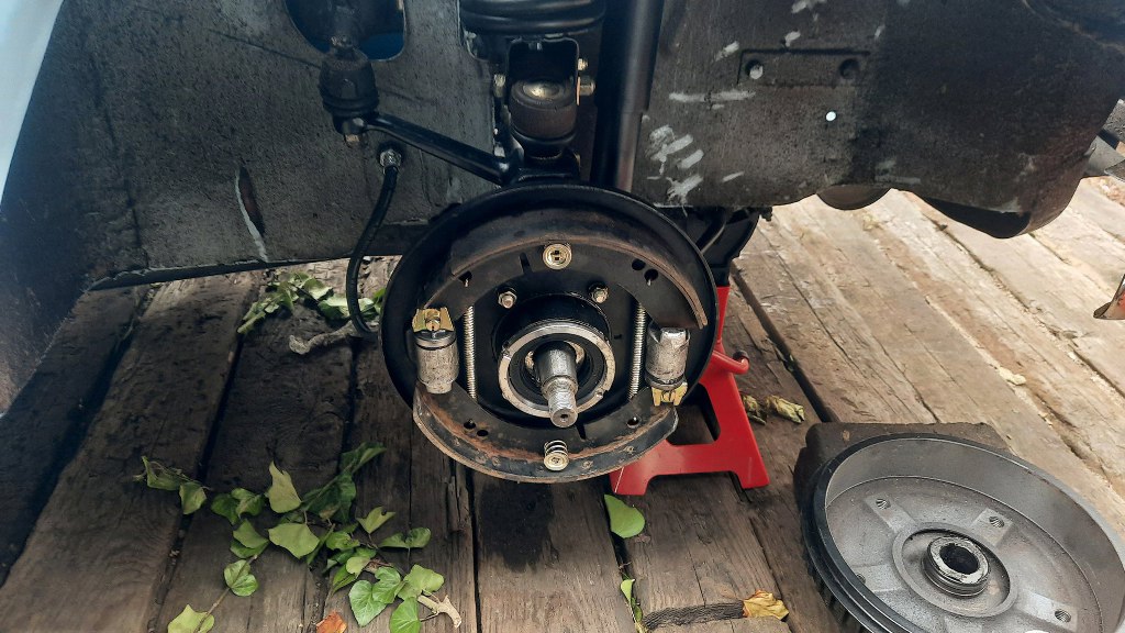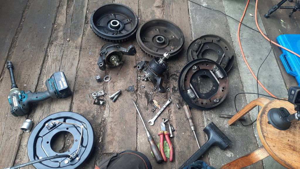 Zakładam zatem starą tarczę kotwiczną, bęben po przetoczeniu; oraz lepsze szczęki z tego nowszego Saaba.