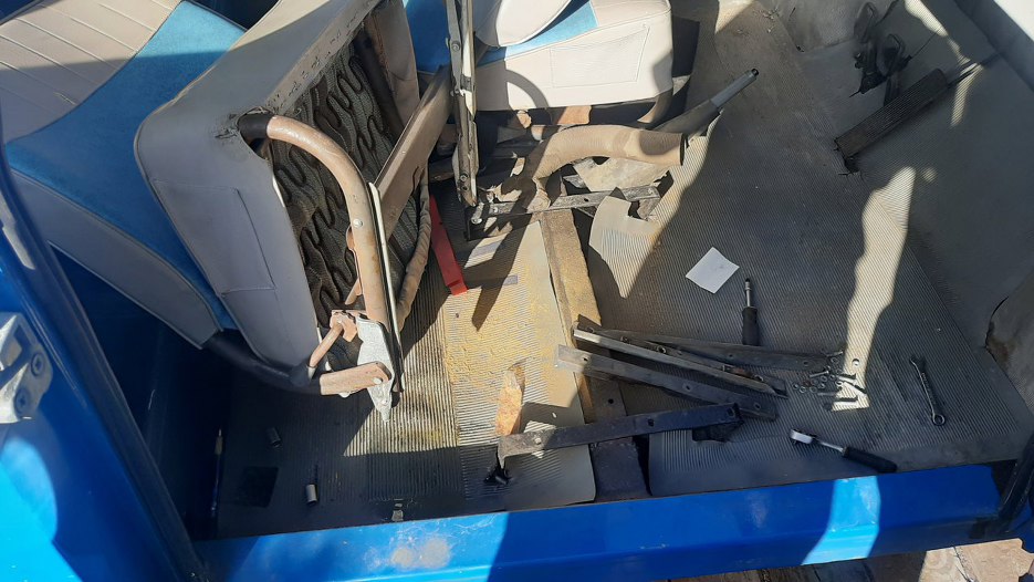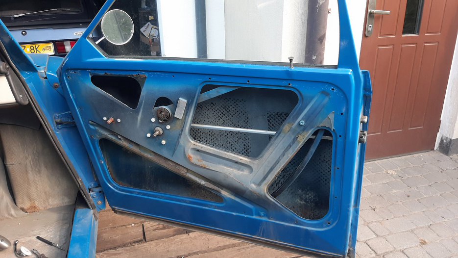 Dość ładna tapicerka. Z jakiegoś powodu zdjęty boczek drzwi lewych i zdemontowany mechanizm szyby.