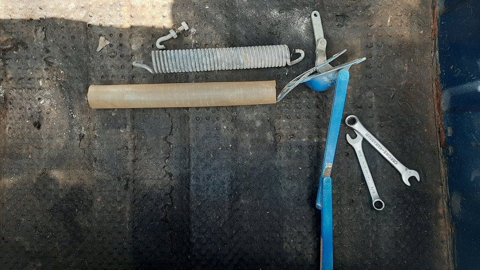 Cały mechanizm wygląda tak. Sprężyna jest w rurce z tworzywa, żeby się nie obijała w karoserii.