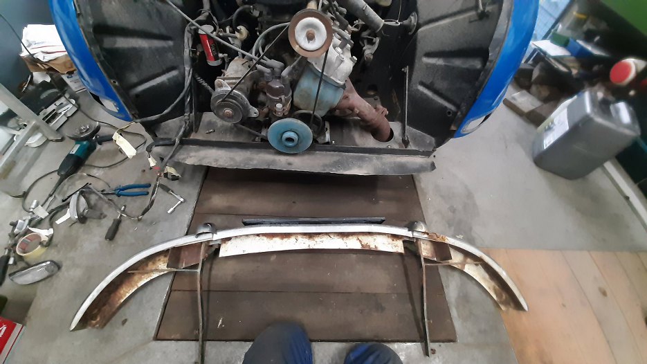 Zdjąłem przedni zderzak. Też muszę go rozkręcić, żeby trzy elementy z blachy w kolorze nadwozia trafiły do lakierowania z resztą auta.