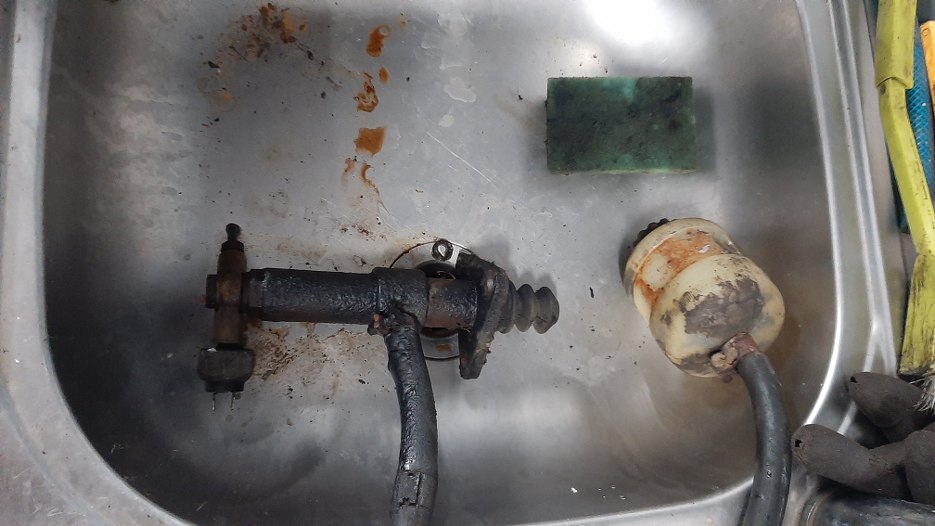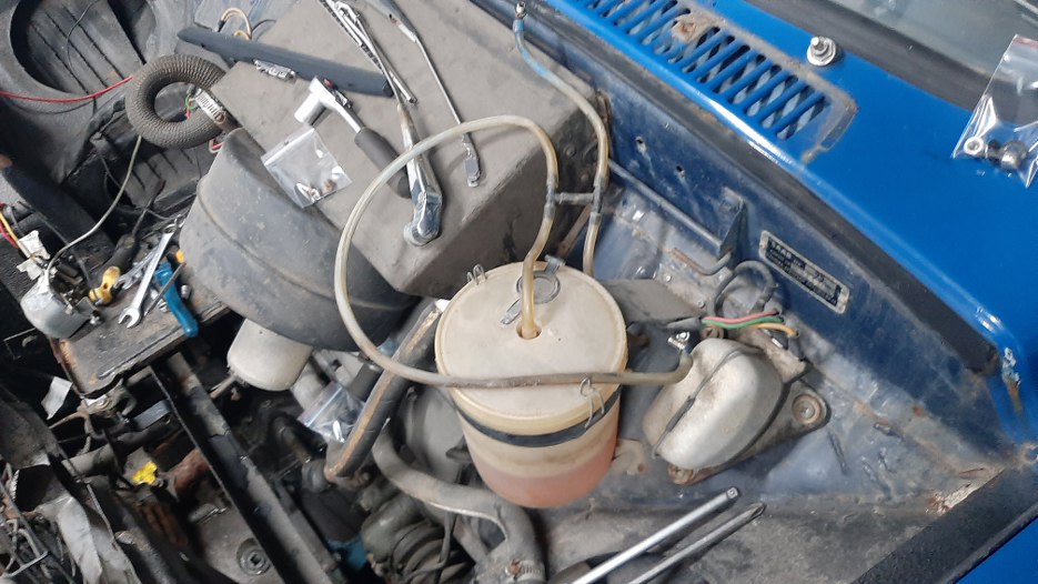 Zdemontowałem pompę hamulcową. Jeszcze jest starego typu, jednoobwodowa.
