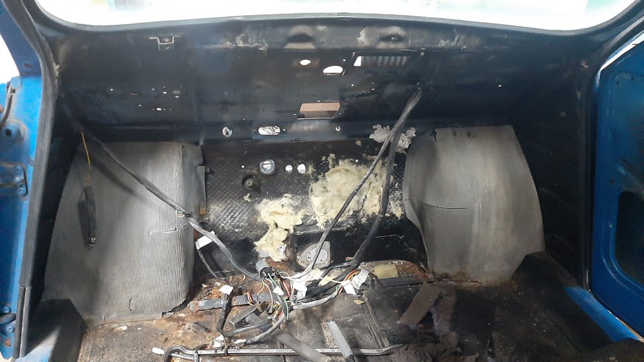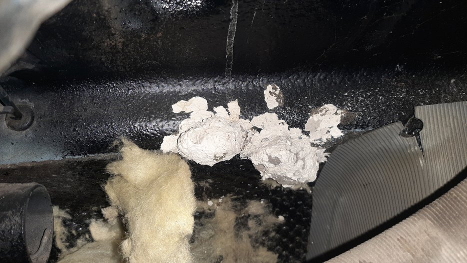 Zdjąłem resztki wykładziny wnętrza Beżowe coś pośrodku to pozostałość wygłuszenia, a te białe?