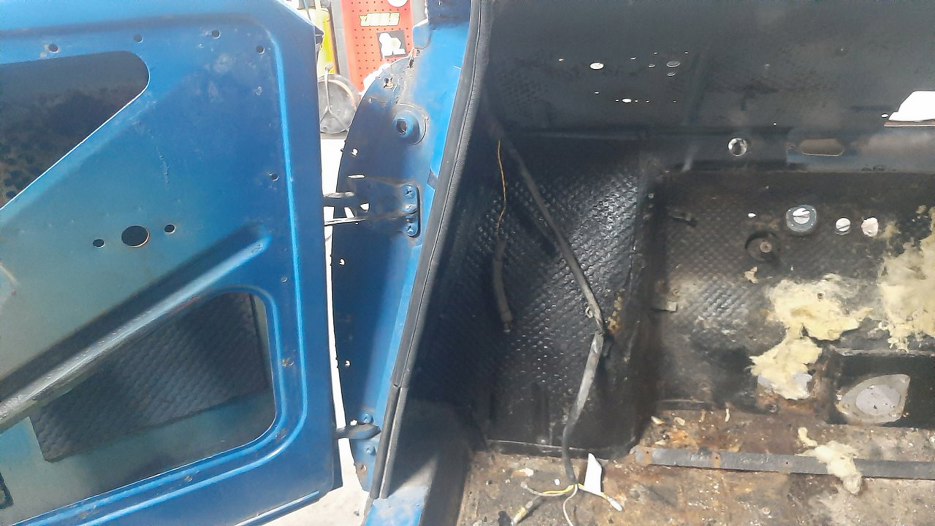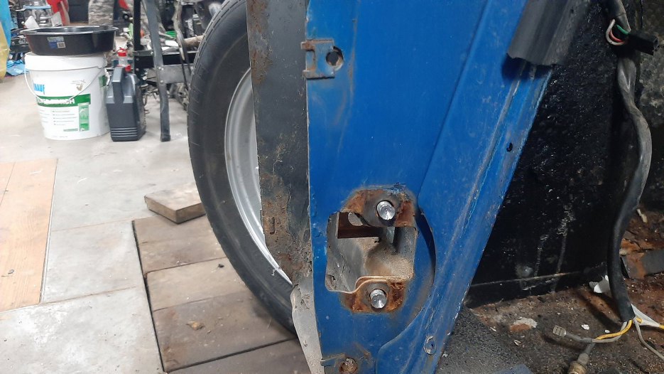 Z tej strony też odkręciłem drzwi i mogłem dzięki temu się dostać do ostatniej, najbardziej upartej, śruby mocującej błotnik.